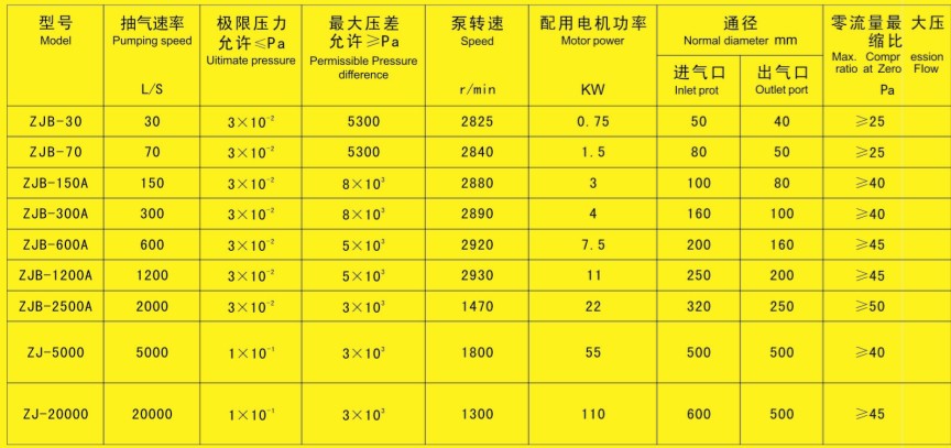 在很大的压力范围内(1×103Pa-1Pa)有很大的抽速,填补了双极旋片泵在这个压力范围的抽速减弱缺陷,同时也可以作为增压泵使用。 The pump rate is very high under huge pressure range (1×103Pa-1Pa). The defect of pump rate reduction for Bipolar Rotary-vane Pumps under this pressure range is filled, meanwhile it can also be used as booster pumm.